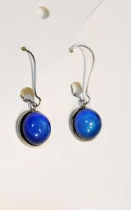 Artisan made mood balancing calming dangle earrings, made from 12 mm cabochons set on a stainless steel bezel tray with a latch back closure. Measures approximately 1".